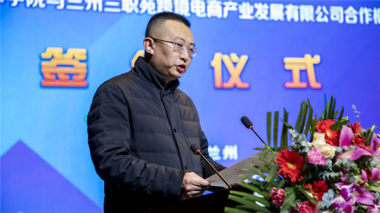 党委书记寇桂杰在仪式致辞中指出,兰州职业技术学院作为跨境电商平台建设的一份子,始终紧密关注我省电商产业发展变化、始终突出服务区域经济社会发展的需要,着力培养德技并修的高素质电商技术技能人才。学院加入了全国跨境电商综合试验区职业教育集团,与兰州市商务局、兰州兰职苑跨境电商产业发展有限公司积极合作,探索建立起了“政校企”三方联动培养模式,形成了教学、实战、孵化三层递进的特色人才培养体系。目前,学院已建成了跨境电商创业工作室4间,工位 64个,孵化出种子企业5家并通过亚马逊等知名跨境电商平台面向欧洲、中东地区国家开展业务。寇桂杰表示,学院将持续围绕区域跨境电商人才培养和培训工作需要,紧盯培养复合型高素质技术技能人才目标,进一步转变更新教育理念,进一步强化师资队伍建设,进一步强化行动导向教学运用,进一步强化产教融合校企合作,以高水平的就业,服务区域电子商务事业高质量发展,书写技能甘肃建设中兰职的作为担当。